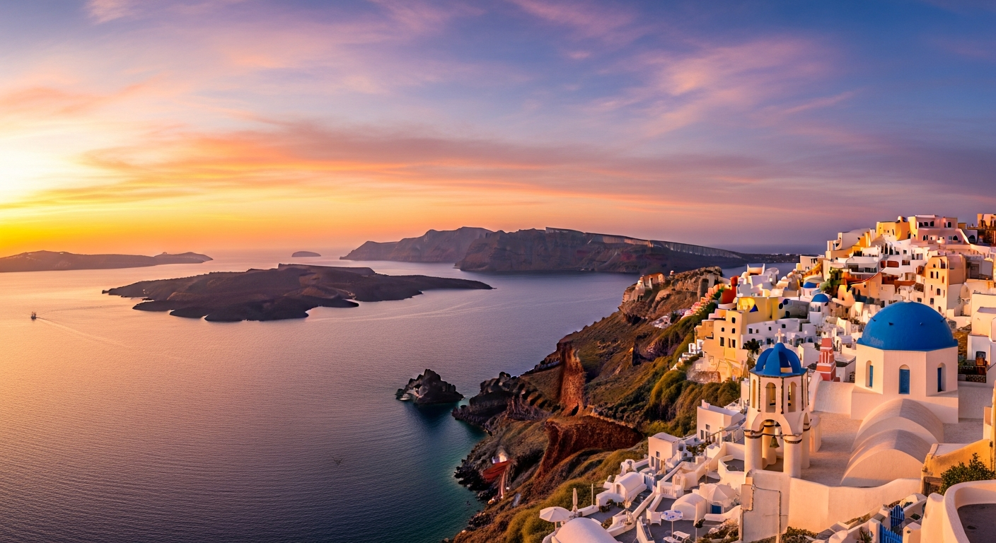 ไม่ได้โดยตรง ซานโตรินีเป็นเกาะ ต้องนั่งเฟอร์รี่จาก Piraeus (5-8 ชม.) หรือบินภายใน (45 นาที) บริการรถครอบคลุมแผ่นดินใหญ่เท่านั้น สำหรับรถบนเกาะจัดแยก ทีมงานช่วยจัดให้ ซานโตรินีปี 2025-2026 จำกัด cruise 8,000 คน/วัน + eco-tax €20/คน (มิ.ย.-ก.ย.) ลดเหลือ €12 ต.ค. และ €4 พ.ย.-มี.ค. (ที่มา: eurofast.eu)